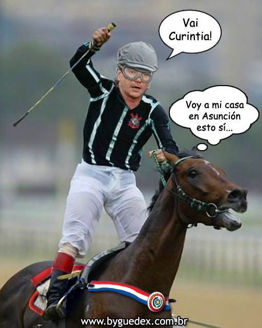 Muito boa! Sugiro, apenas, substituir o puro sangue por um jumento, mais adequado para o manejo do jockey com cara de areia mijada. Aliás, agradeço ao Papai do Céu pela antecipação do meu presente do Dia das Crianças (hahaha)