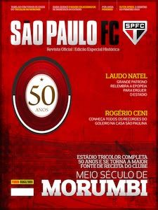 Inteiramente voltada ao cinquentenário do maior estádio particular do mundo, a revista histórica editada pela Panini com a colaboração do historiador Michael Serra traz entrevistas históricas com figuras como Laudo Natel, Rogério Ceni, Olten Ayres e Peixinho, além de um Tabelão com TODOS os jogos do Tricolor no Morumbi desde a inauguração de 1960.